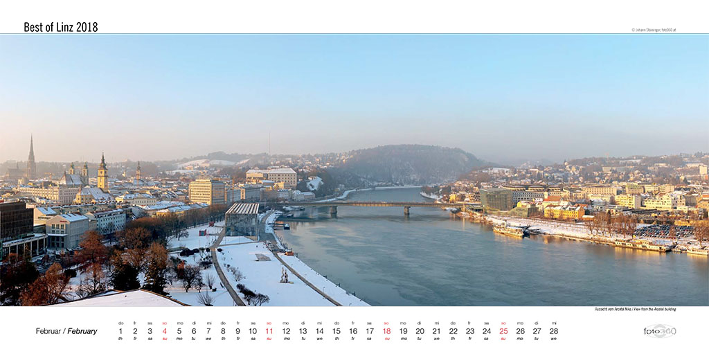 Von seiner besten Seite zeigt sich Linz 2018 in diesem Panoramakalender. Kulturelle Highlights, architektonische Meilensteine oder beeindruckende Naturgebiete werden Sie