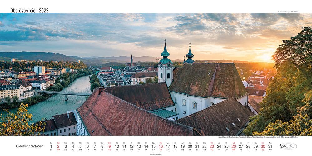 Der Oberösterreich Panorama-Kalender für 2022 ist im Format 60 x 30 cm erhältlich.