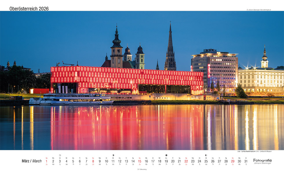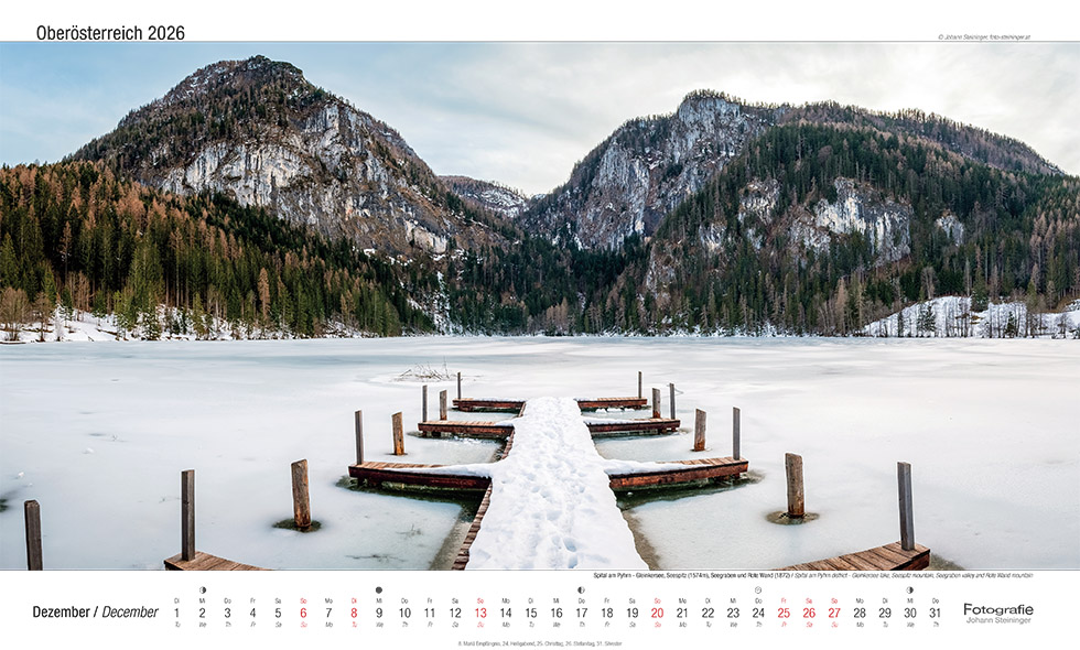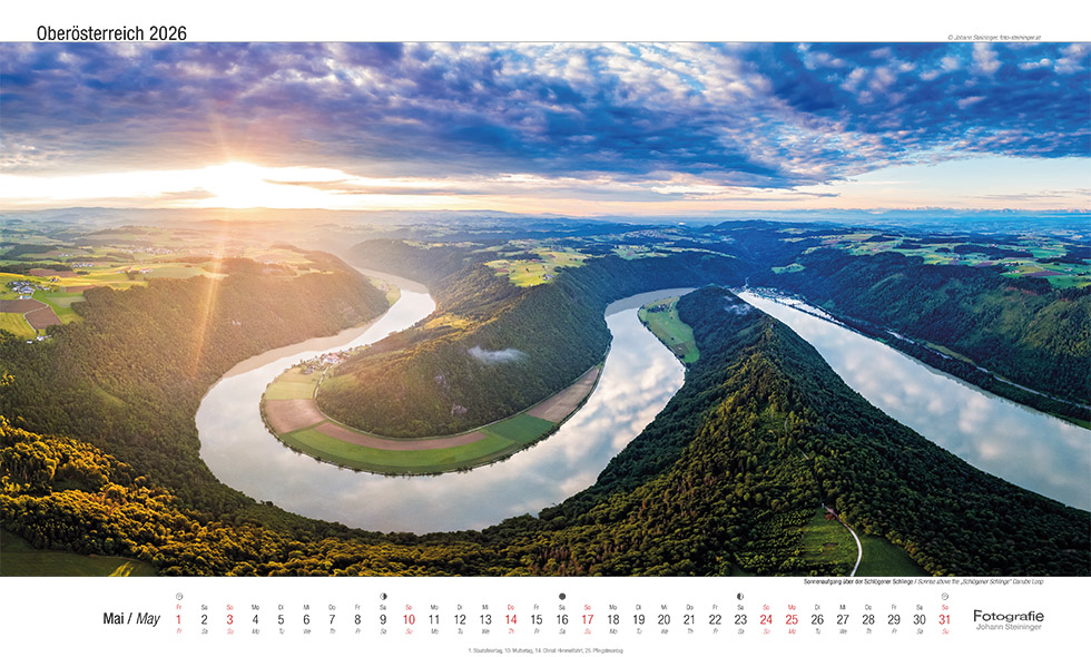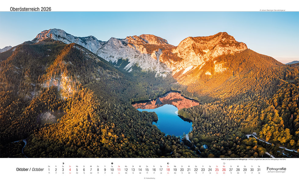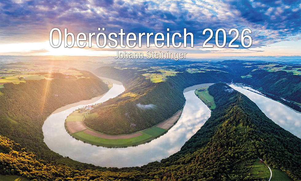 Der Oberösterreich Panorama-Kalender für 2026 ist im Format 60 x 36 cm erhältlich.